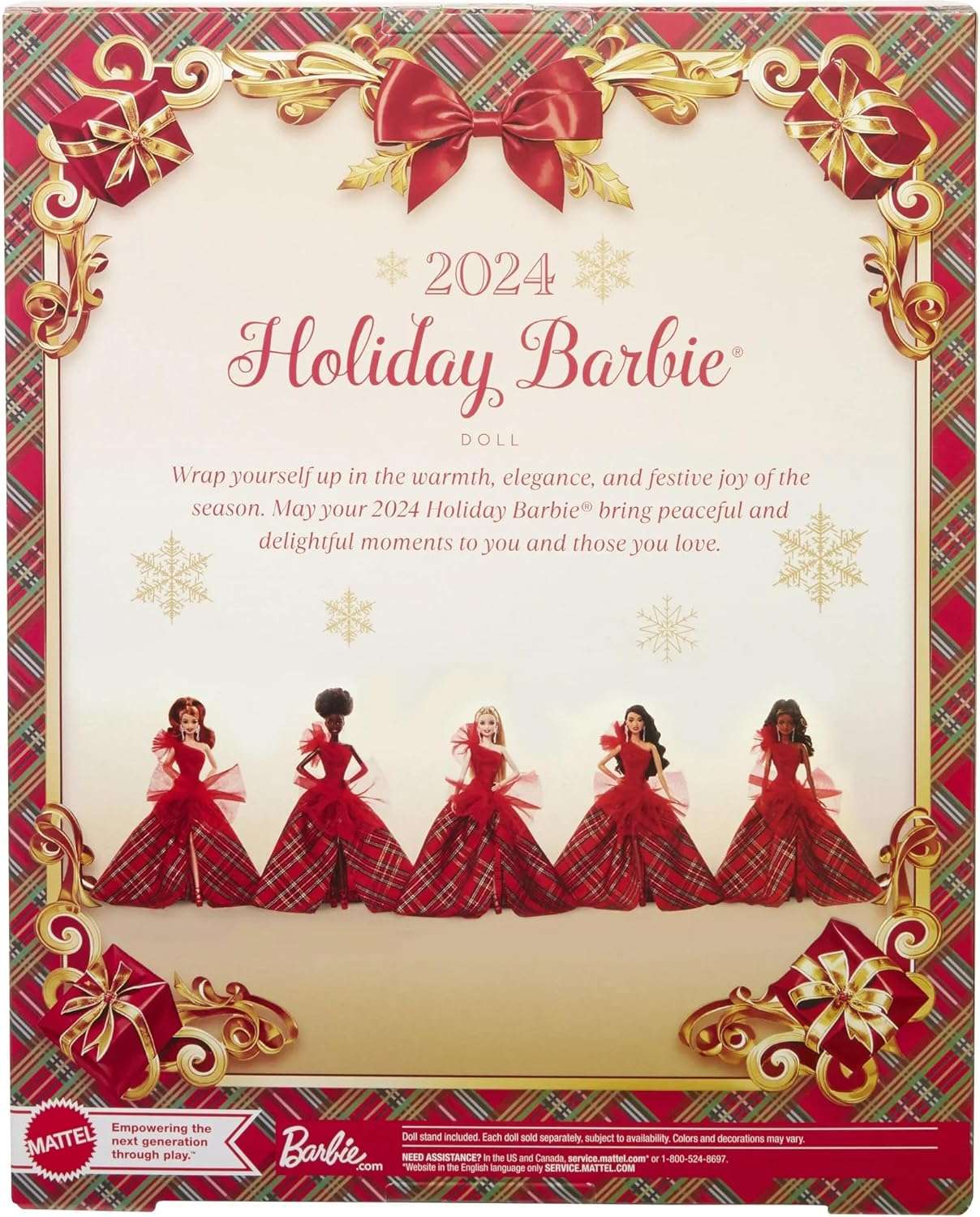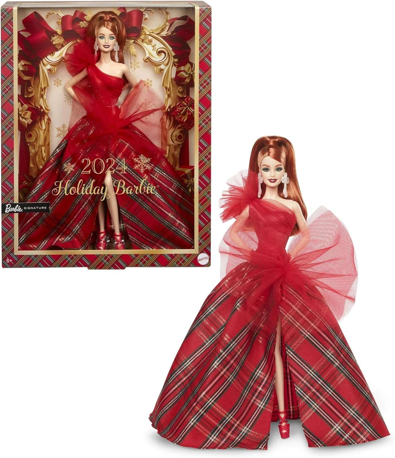 Enjoy the bubbly soul with the 2024 Occasion Barbie doll, a shocking expansion to any assortment. This impeccable doll is enhanced in an energetic red outfit with a full tulle skirt, highlighting multifaceted plaid designs and sparkling accents. Her searing red hair and brilliant grin catch the delight of the Christmas season. Whether showed on a rack or played with, this Barbie doll makes certain to bring a bit of excitement and festivity to your home. Created with careful scrupulousness, it makes a captivating gift for Barbie aficionados, everything being equal. If it’s not too much trouble, note that this is a grown-up collectible and isn’t planned as a toy for small kids.