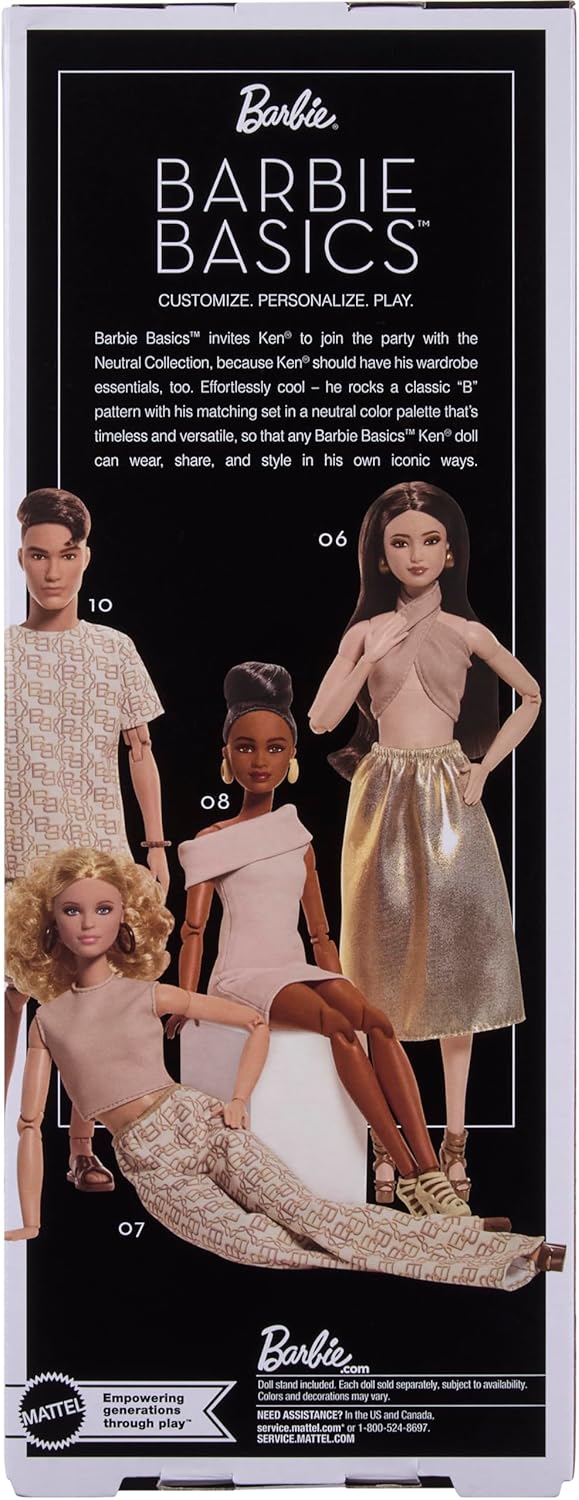 Barbie Basics Model Collector Ken Fashion Doll 10 with Brunette Hair in Shirt & Shorts with Matching Print, Universal-fit Fashions & Posable Body