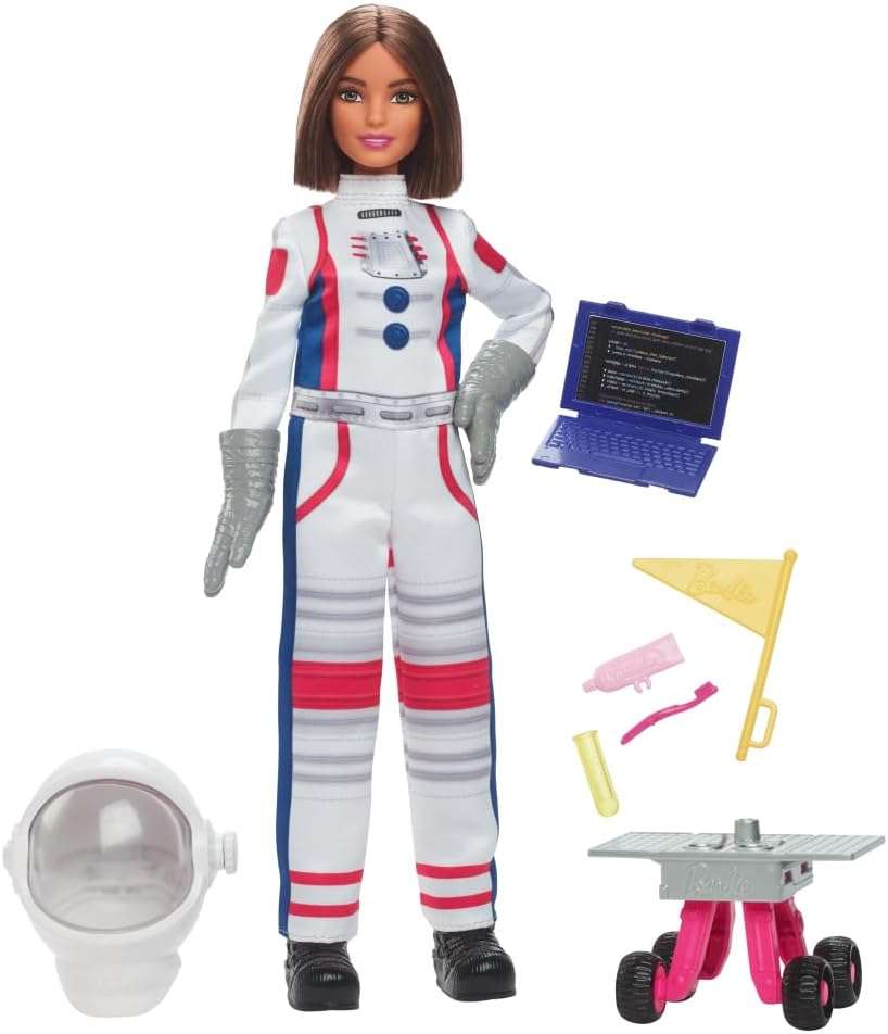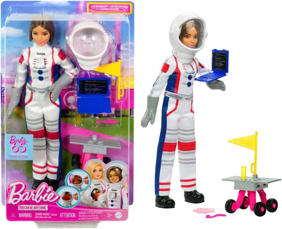 Barbie Careers Playset, 65th Anniversary Astronaut Set with Brunette Doll & 10 Accessories Including Rolling Rover & Space Helmet with Flipping Shield