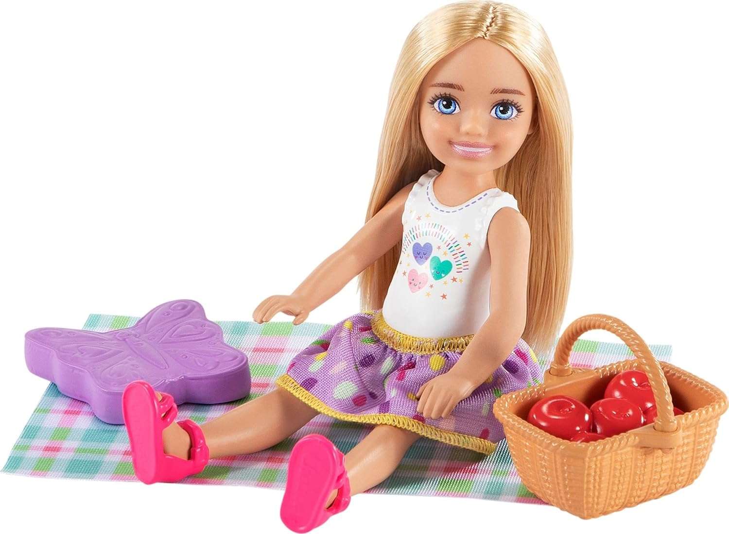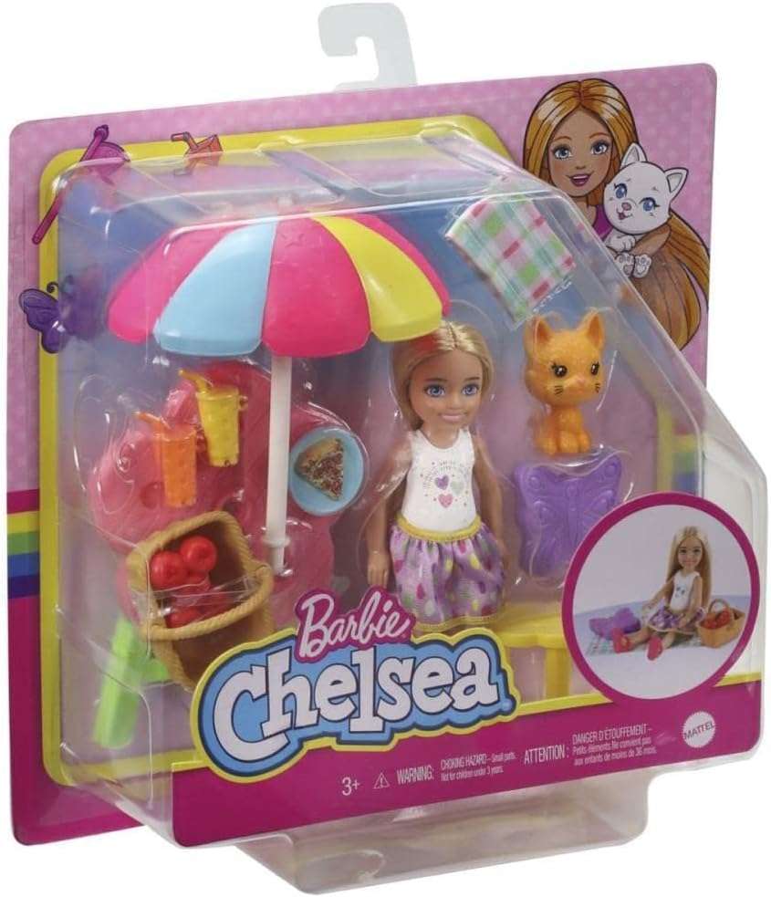 Barbie Chelsea Picnic Playset with Chelsea Doll (6-in Blonde), Pet Kitten, Picnic Table, Umbrella, Basket & Accessories, Gift for 3 to 7 Year Olds
