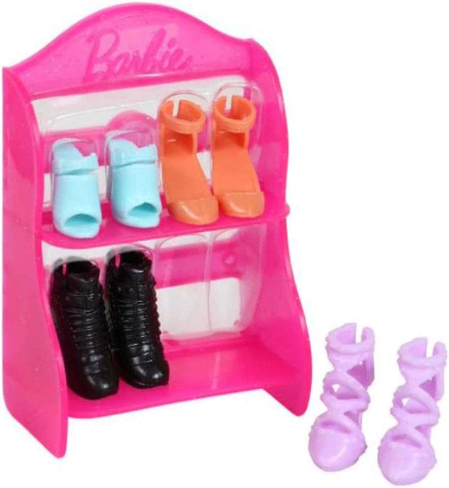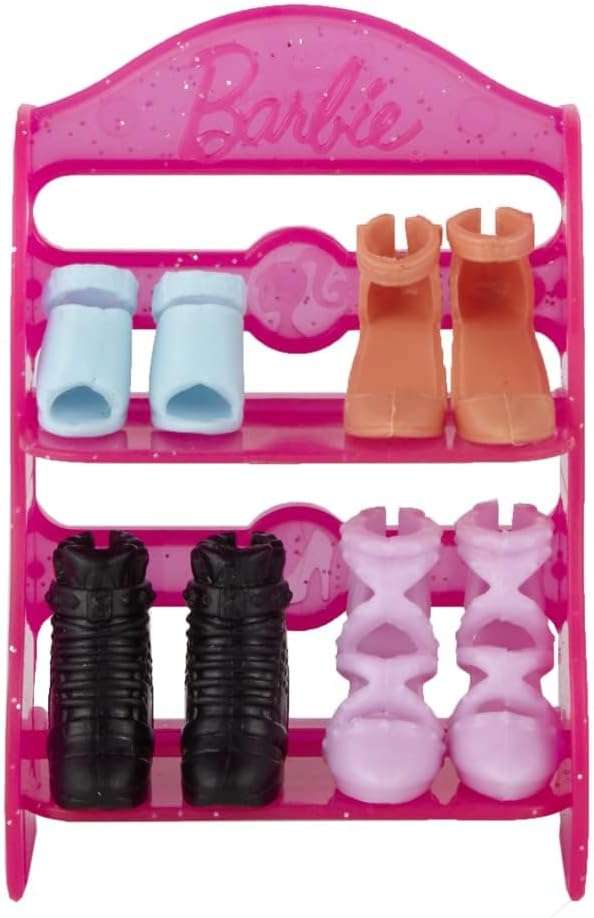 Barbie Doll Shoe Pack – GVY23 ~ Includes 4 Pairs of Doll Shoes with Shoerack – Blue, Orange and Purple Heels with Black Boots