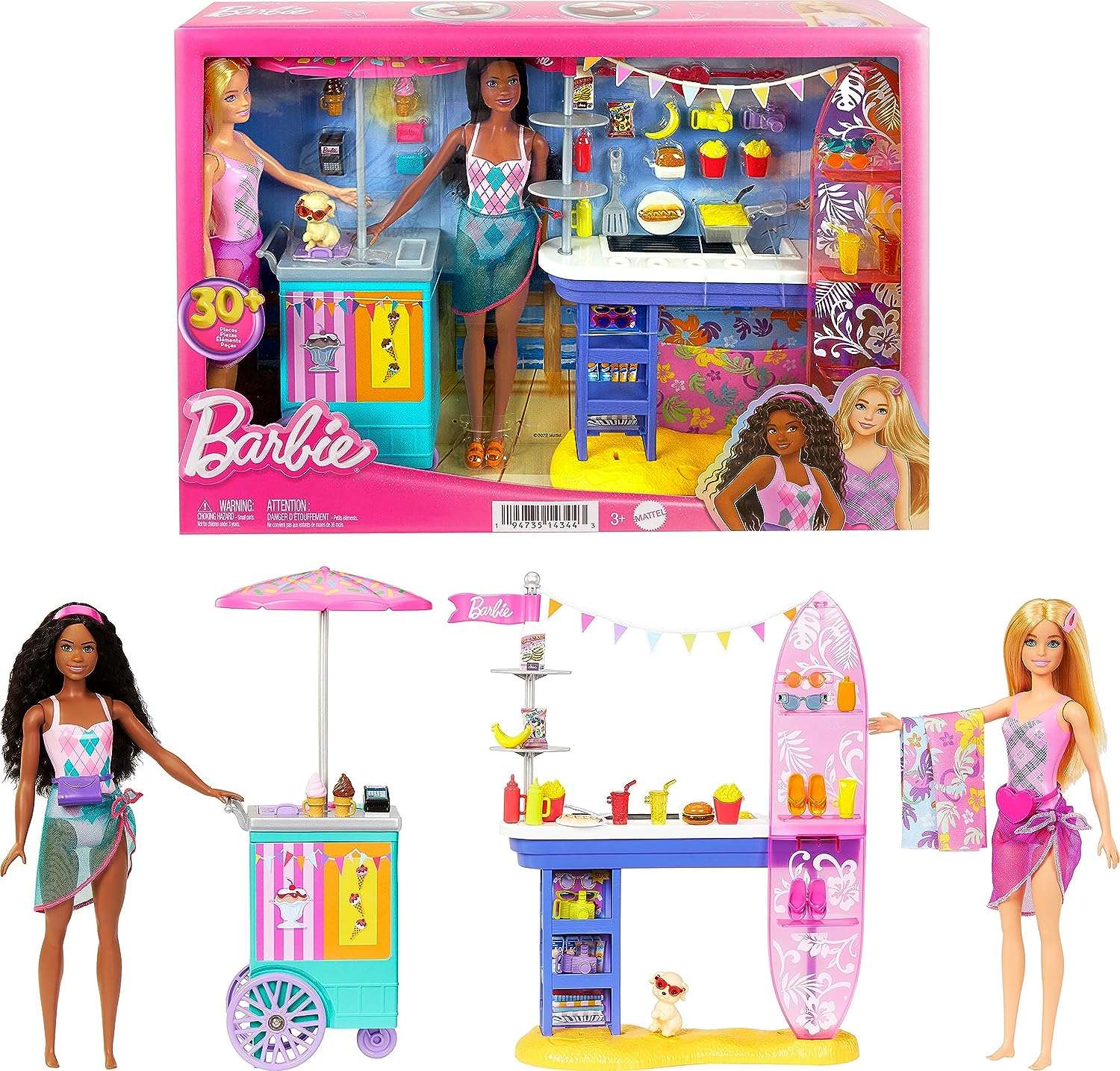 At the Barbie ocean side promenade playset, minds will track down in excess of 30 parts of feed their next story, including both Barbie ‘Malibu’ and Barbie ‘Brooklyn’ dolls and their doggy. Propelled by the YouTube series Barbie and Barbie On Set, the playset highlights a tidbit stand with a cool surfboard detail and a frozen yogurt booth with wheels that truly roll! Children can arrange up play close by most loved food sources like burgers, fries and frozen custards, then look at with the card peruser and Mastercard that can truly be embedded! With narrating pieces like cameras, shades and towels, this Barbie playset is loaded with late spring fun. Dolls can’t remain solitary. Varieties and beautifications might change.