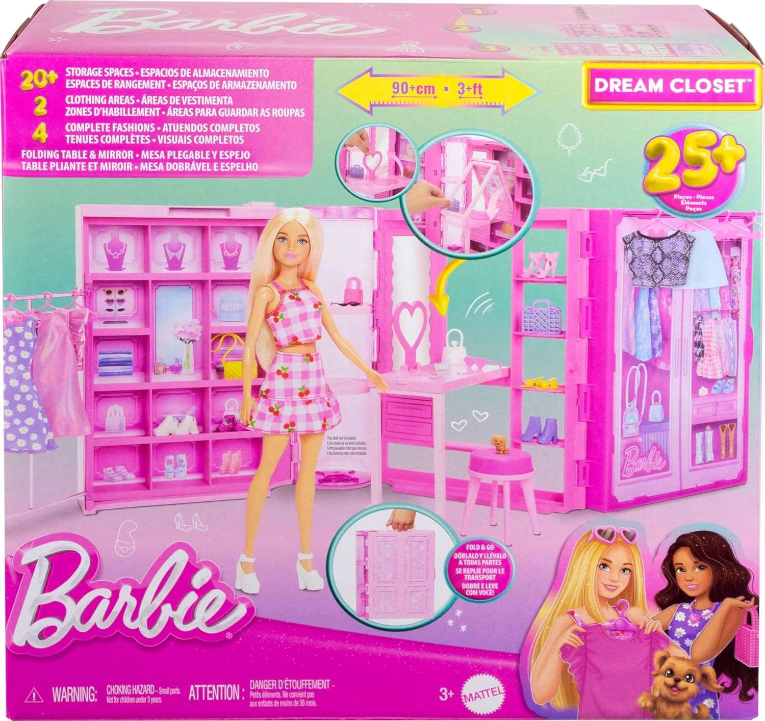 This Barbie Dream Storeroom is loaded with vast styles and stories children can make for Barbie! Open the glittery pink closet to uncover a 3 expansive playset with 2 dress racks, 20+ extra rooms, an overlay down vanity with a spring up reflect, full-length mirror, and shoe rack. There’s even a hassock for the pet pup! Children will cherish styling Barbie (doll sold independently) with 25+ garments and extras like dresses, shoes, pieces of jewelry, and totes in abundance. Blend and match 3 complete searches for Barbie and plunge into styling and narrating play! Children can assist Barbie with dolling pick an outfit on the rack, style and adorn at the mirror, then, at that point, complete the process of preparing with at the vanity before she goes out in style with her pet little guy for the greatest day of all time! For simple capacity, every one of the pieces fit inside the wardrobe with a pink Barbie handle for in a hurry fun. Tones and adornments might fluctuate.