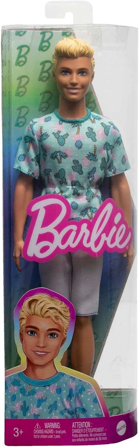 Barbie Fashionistas Ken Fashion Doll #211 with Blonde Hair, Blue Cactus Tee, White Shorts and Sneakers