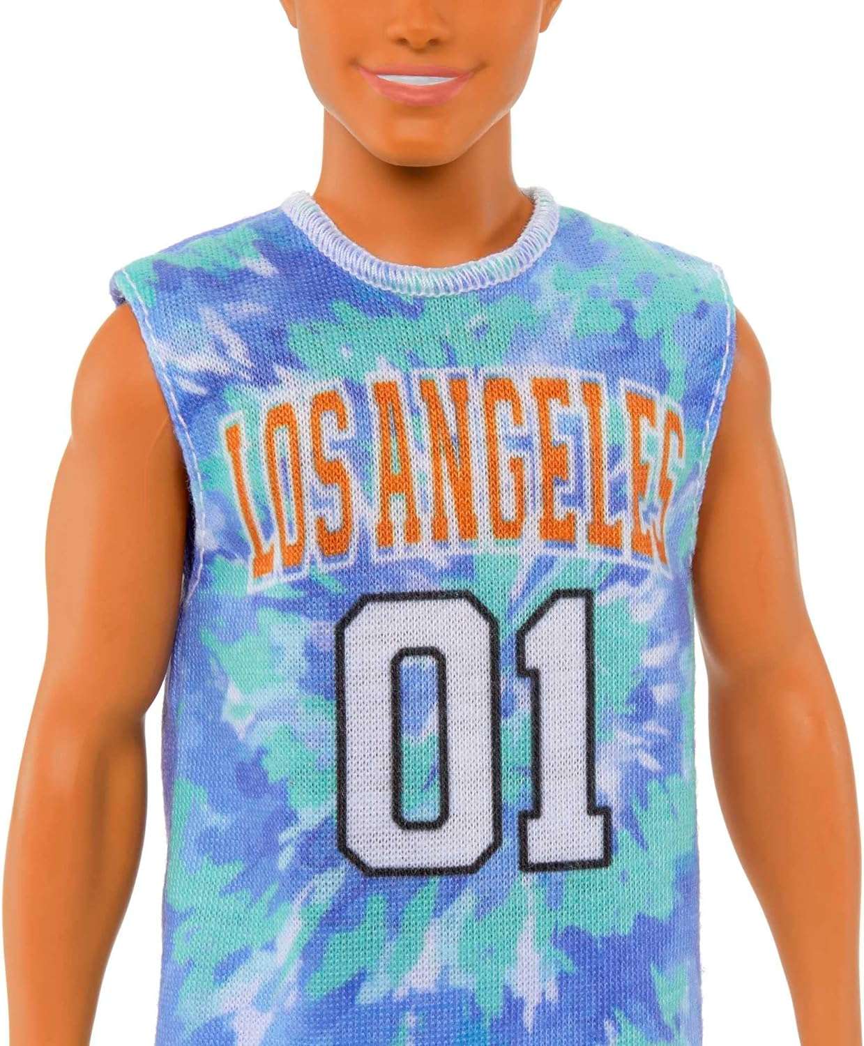 - This Ken doll has earthy colored hair and a prosthetic leg. He wears a splash-color Los Angeles shirt that truly makes his character pop!