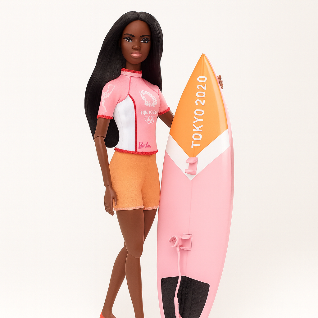 Barbie doll is prepared to hit the waves and go after the gold with a Tokyo 2020 surfboard!