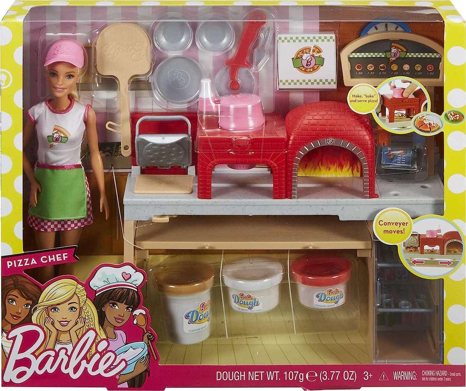 Barbie Pizza Chef Doll & Playset, Toy Oven & Counter with Sliding Conveyer Belt, Molds, 3 Dough Colors & Accessories