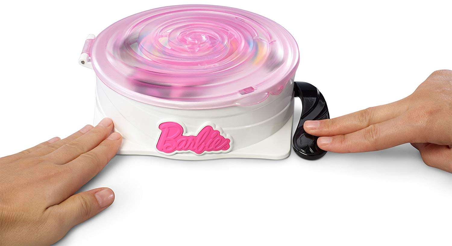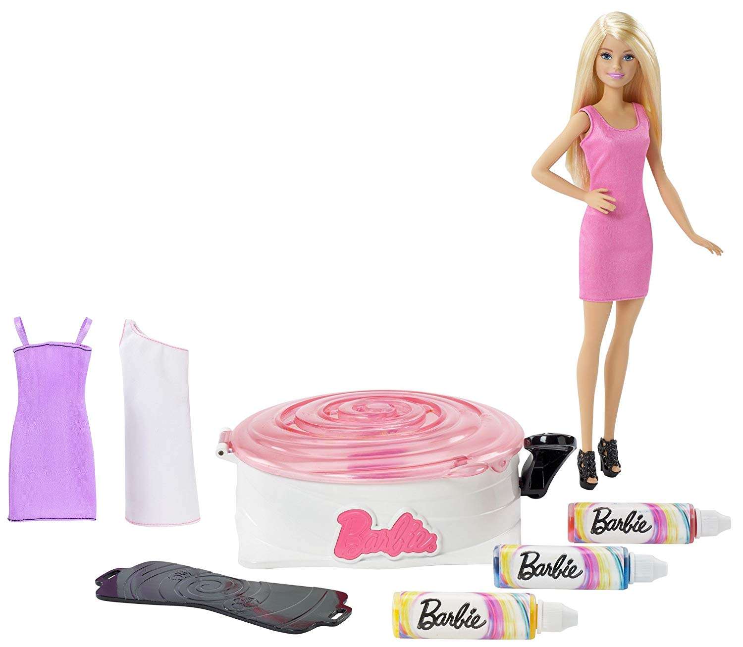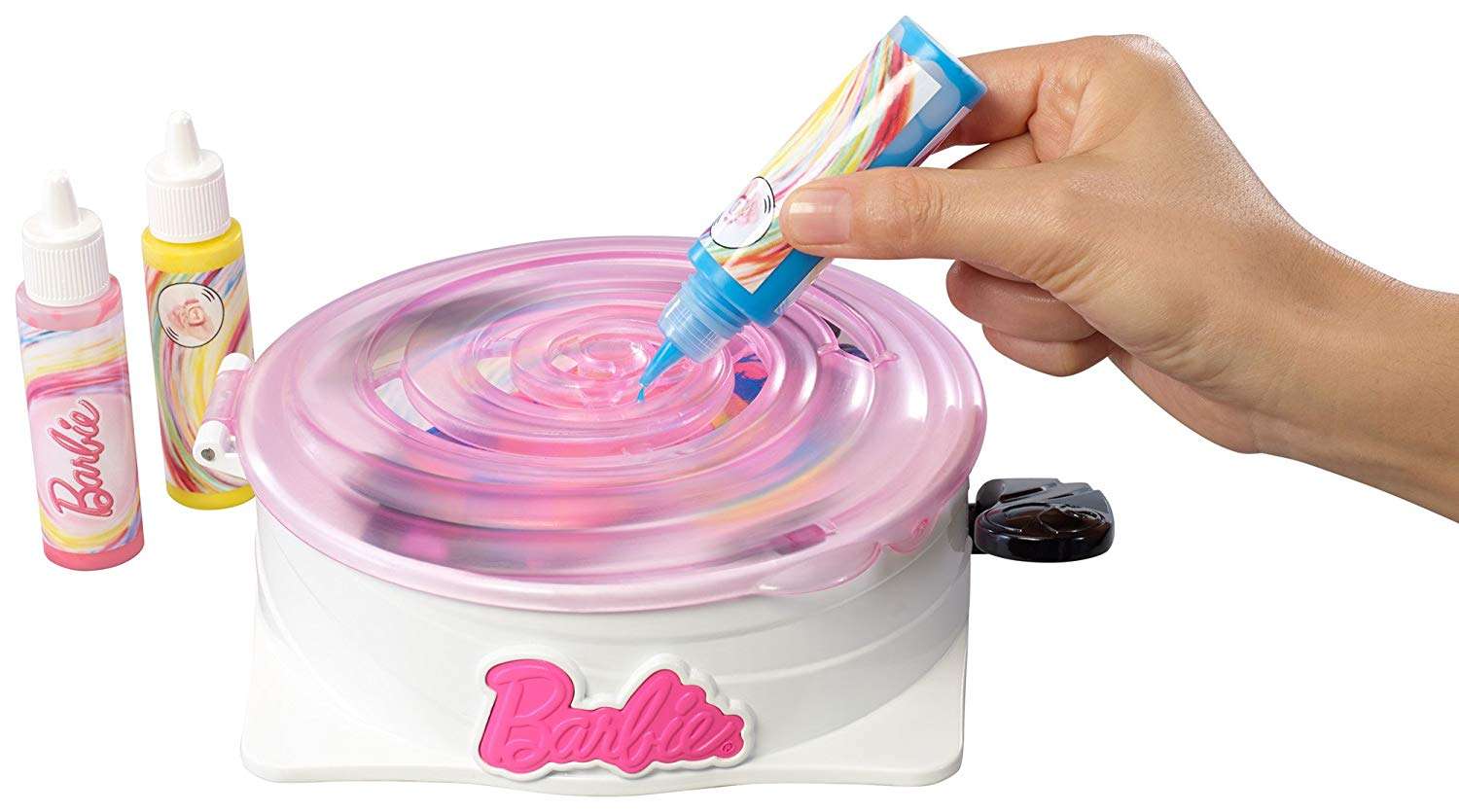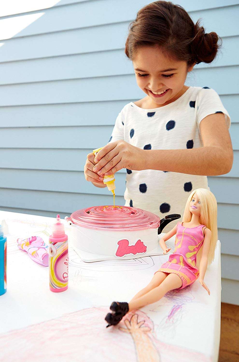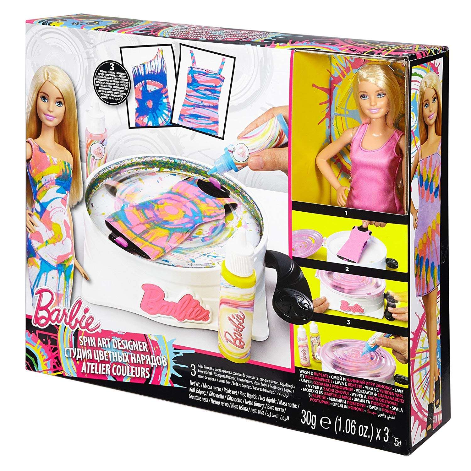 Develop your own styles and let the fashion developer in you radiate with the Barbie Spin Art Designer. Pump the lever on the spin art device to make it spin, as well as include paint declines through the holes on the system’s lid as it spins. Consists of Barbie doll putting on one washable style as well as shoes, the spin art unit, one gown kind, 2 extra cleanable styles and also three containers of paint.