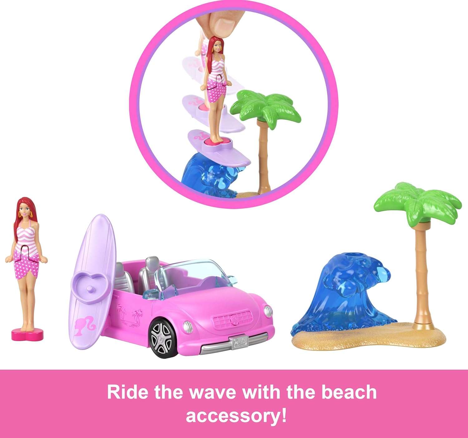 Barbie Mini BarbieLand Doll & Toy Vehicle Set, 1.5-inch Doll & Beach Convertible with Color-Change, Plus Beach Accessory